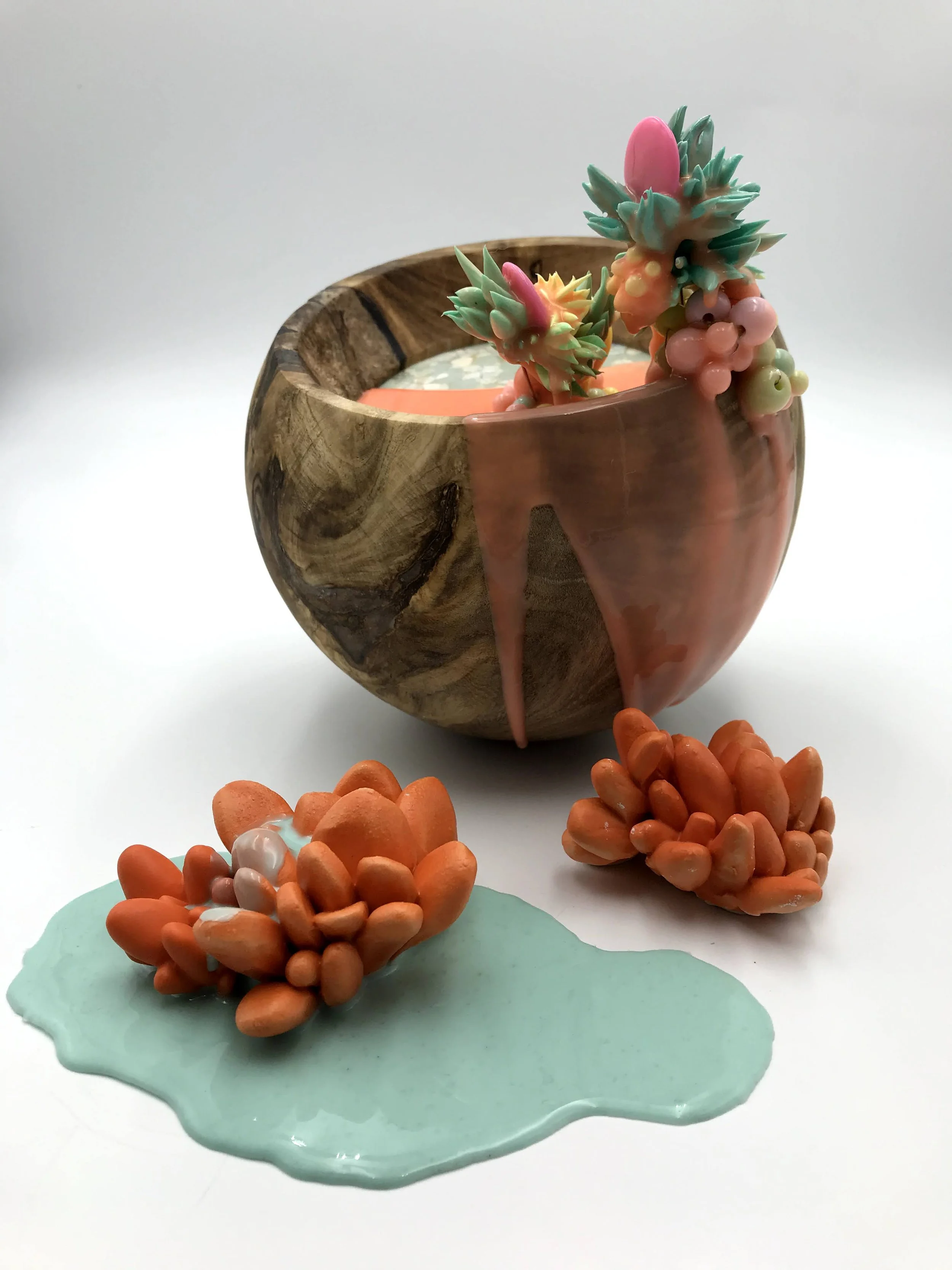 Our collaborative work focuses on the use of excess materials from our daily lives, artistic practices, and surrounding natural and built environments to create “semi functional” artwork that recalls domestic objects like tableware and furniture, or references to the architectural spaces that we inhabit. Of particular interest to us are materials that are or appear to be soft and malleable, that do, or seem to, slump, stretch, flow, drip and squish. These qualities are shared with the human body and lend an organic or biological character to the work. We enjoy contrasting these bodily materials with rigid surfaces. The result are whimsical creations that are chaotic, joyful, and curious, challenging our audience to reconsider the environments and objects we encounter daily.